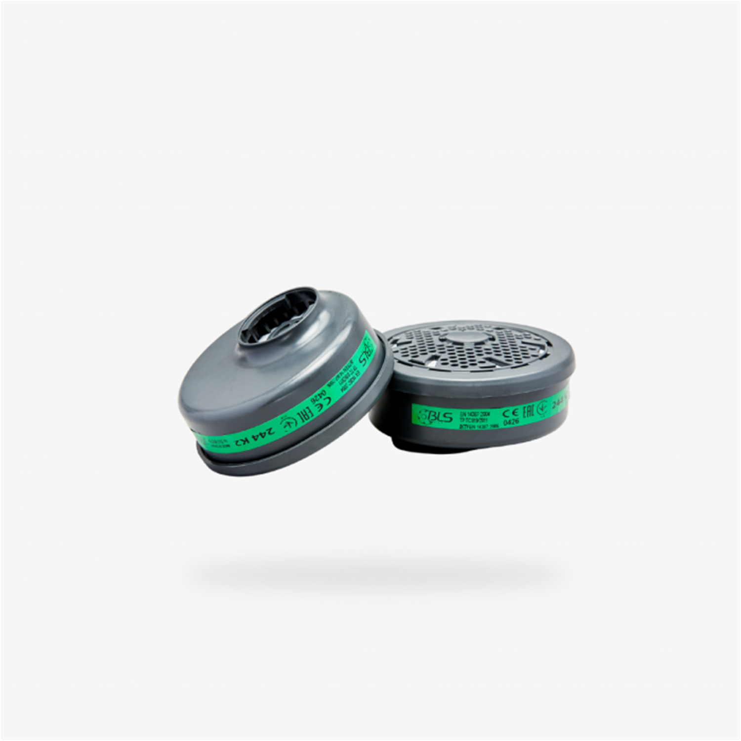Kit de cartuchos BLS 244 K2, ofrece protección contra Amoníaco y derivados. Eficacia de filtro de 99,99% garantizada por una malla protectora.